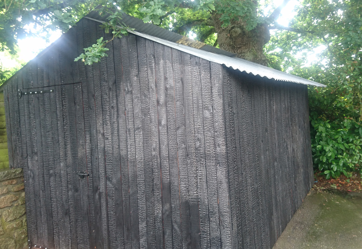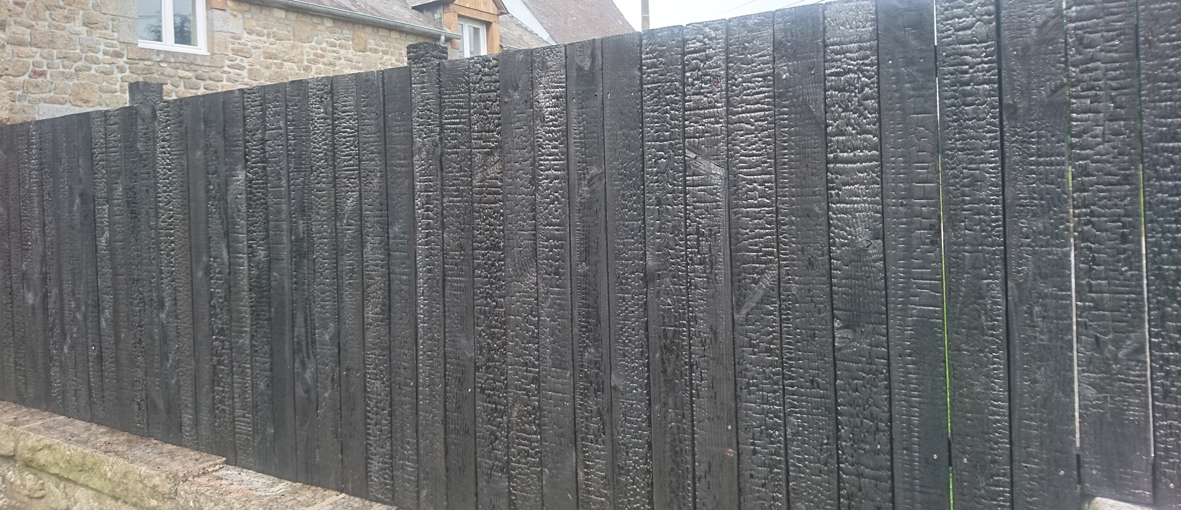 Le bois brûlé est surtout un matériau très esthétique et les feuillages sur fond noir donnent toutes leur luminosité. C’est le cryptomeria qui à l’origine était utilisé au japon mais les résineux se prêtent tous à cette méthode de traitement …